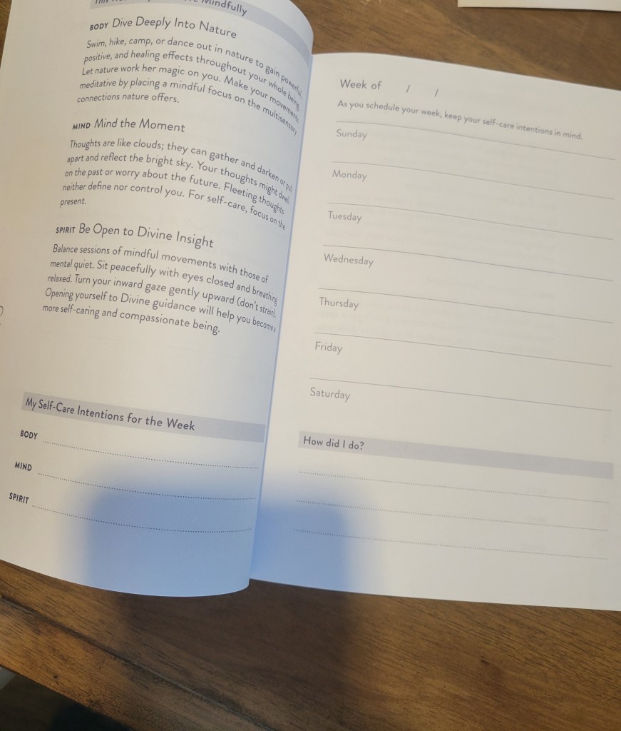 I picked this one up at 5 and below off their book table. I, like most busy moms some time struggle with self-care. I am improving on self-care again by going to get my hair and nails done again at the bare minimum. Also what had been laid to the way side, again with this nasty Corona virus hitting and me not having to get out and go anywhere, I became very lazy with my hair and such. So this one helps me stay on track with that.