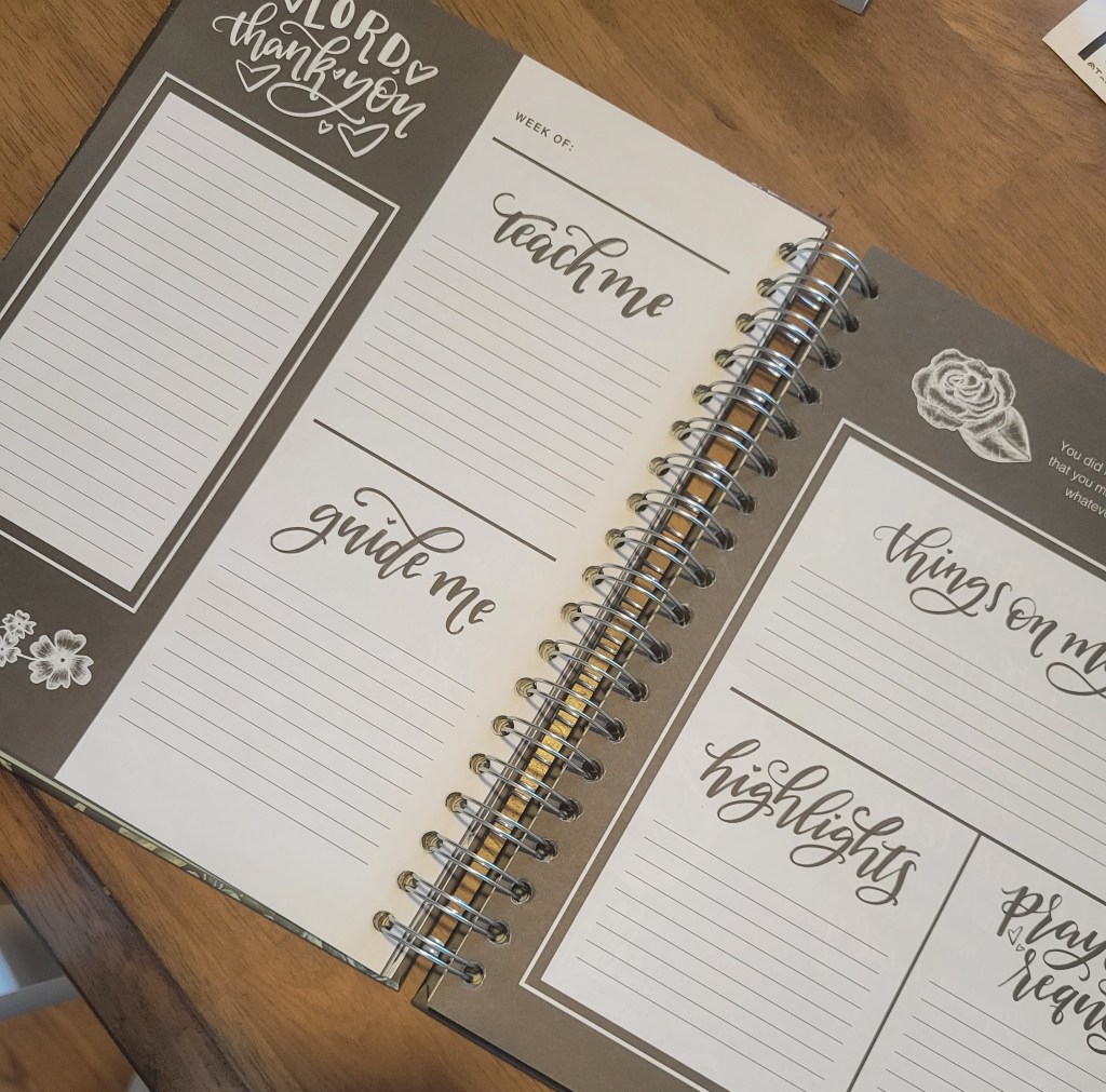 I am very spiritual and my walk with the Lord is so important to me. I try to practice praying on the regular and talking to God is a must. Plus, I love journaling! So I got this Prayer journal to kind of help facilitate that. Since Covid hit in March 2020, I have not been back to church yet. I still attend online service on Sundays and I am doing my best to try to stay connected you know? Here’s what it looks like on the inside…
